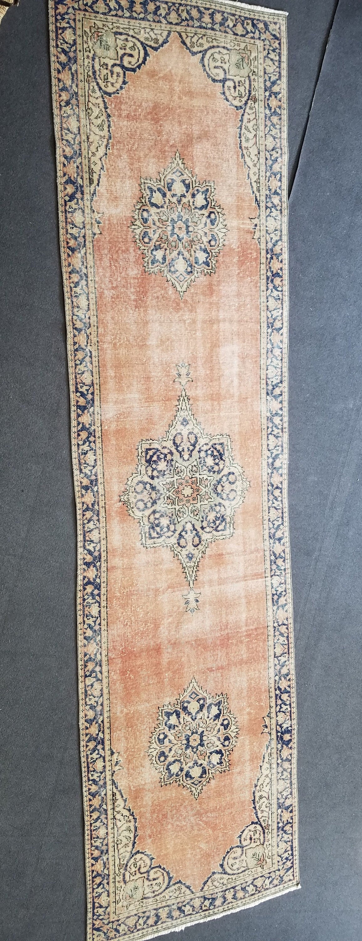 Vintage runner rug, oushak runner 3x11’7 turkish runner rug, kitchen runner