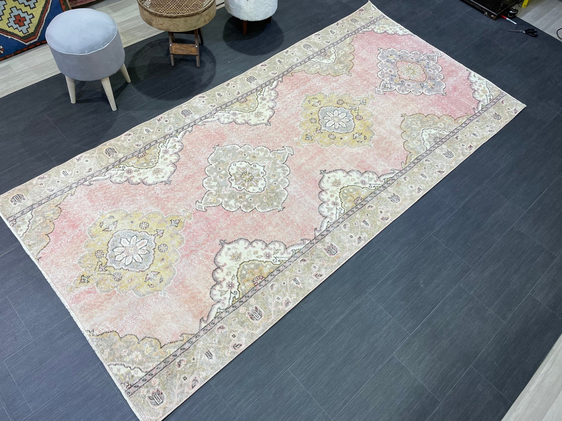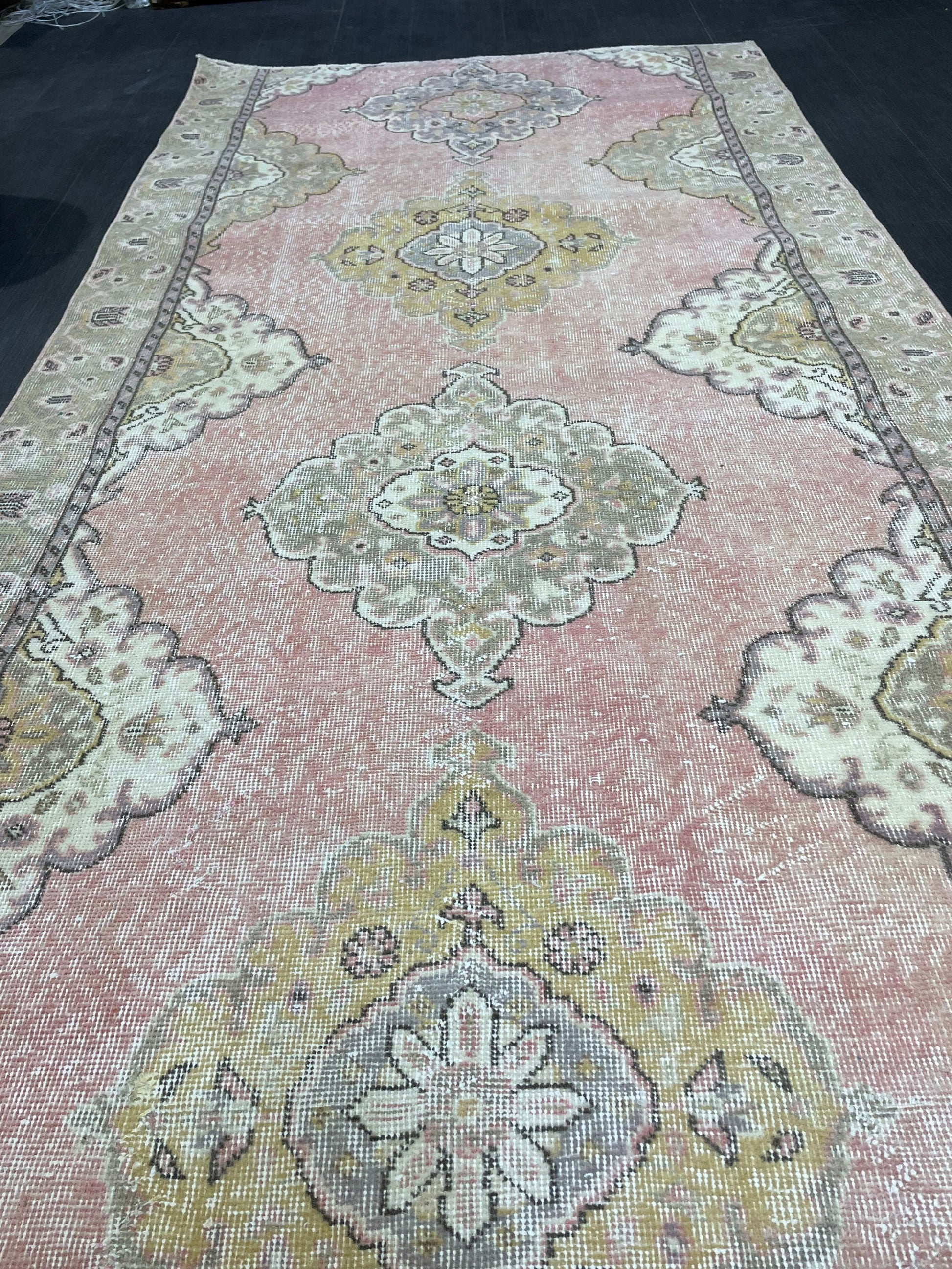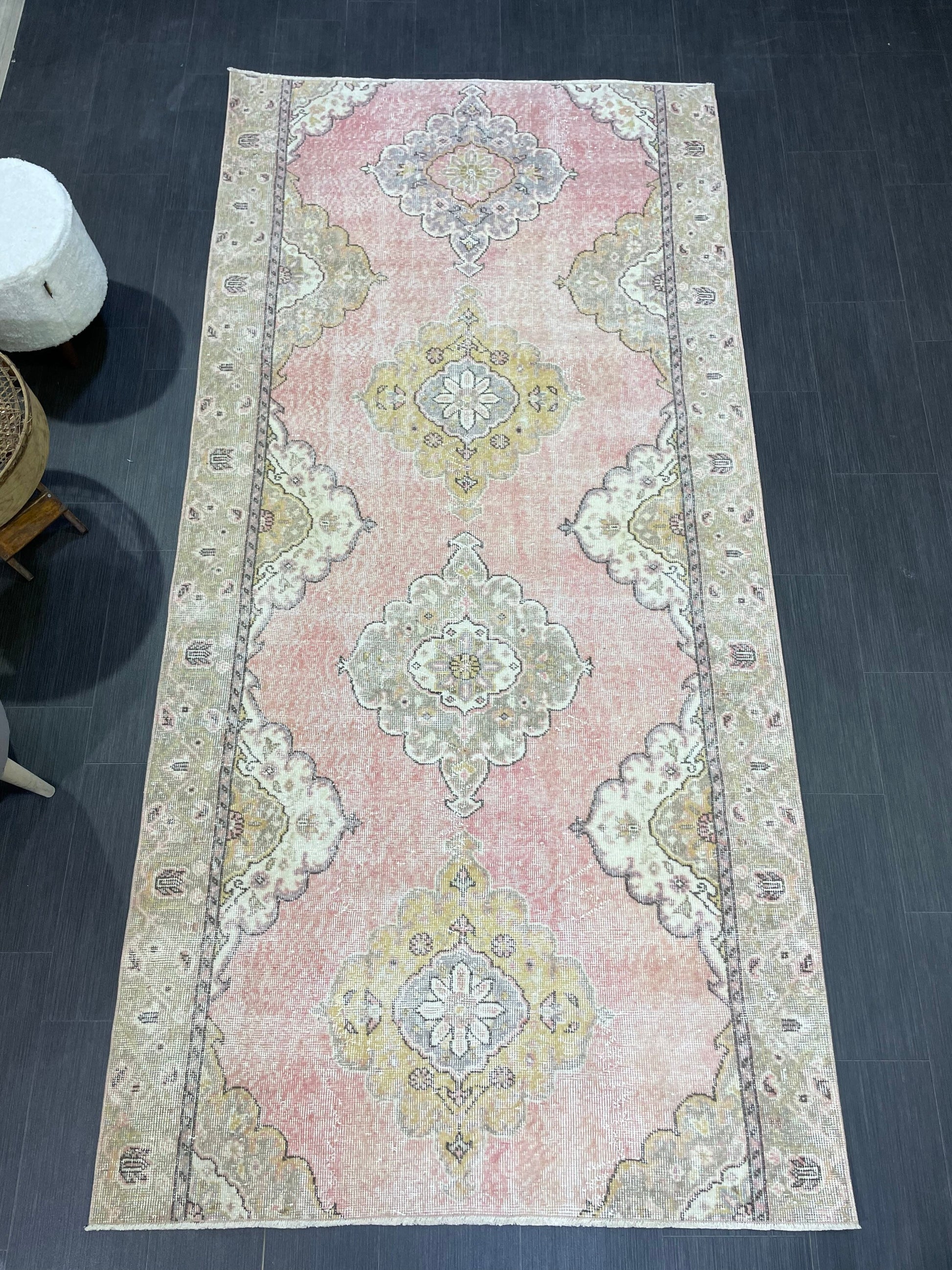Vintage Runner Rug, Pink Hallway Runner 4.6 x 9.2 Rug, Kitchen Runner Rug, Wool Runner Rug Muted Oushak Rug Pretty Turkish Runner