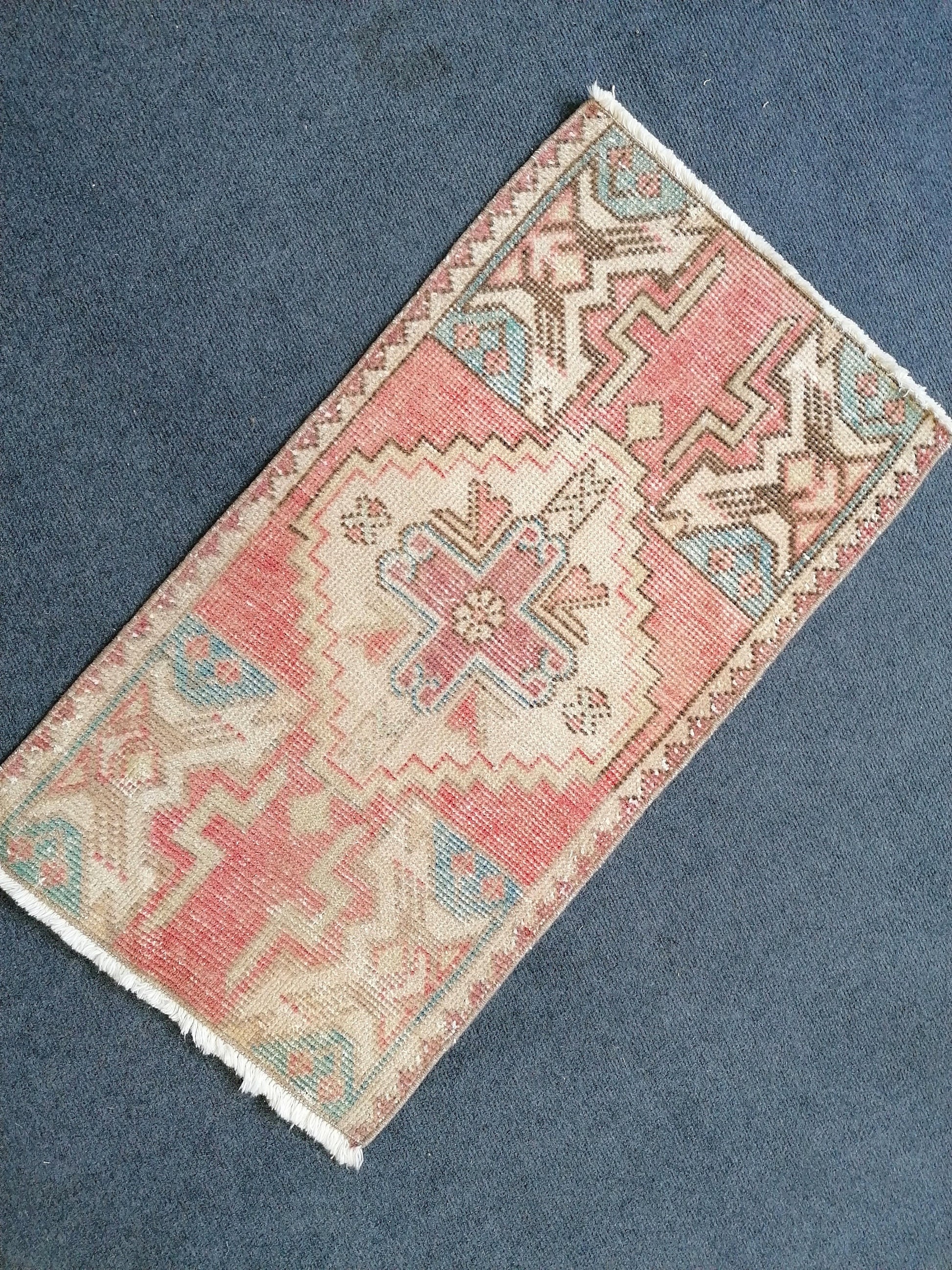 Vintage small turkish rug, hand made wool rug 2'10x1'6 feet