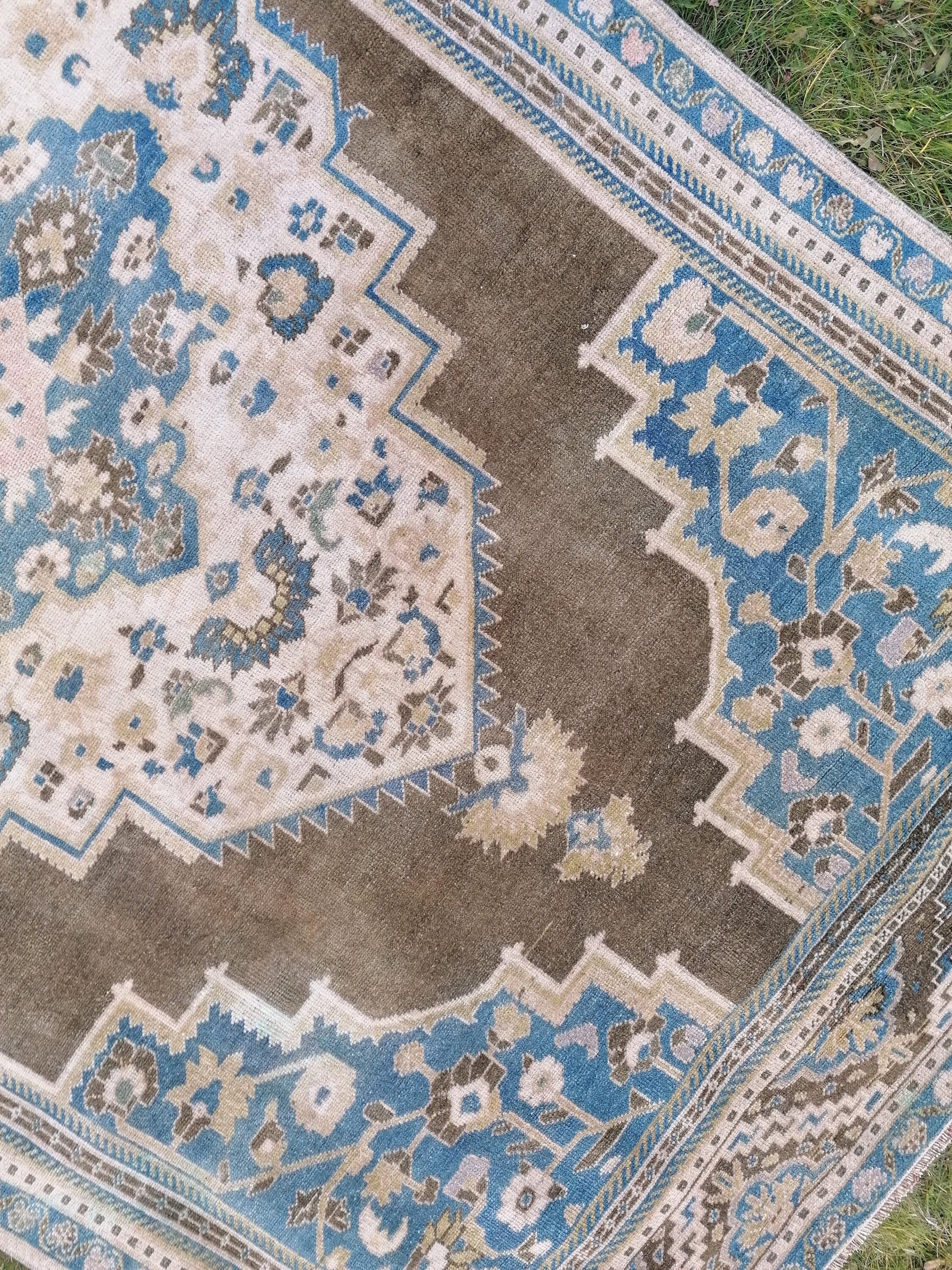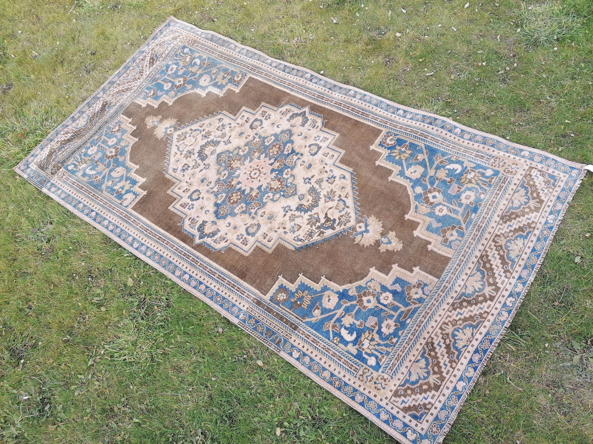 Vintage turkish rug 8'8x4'9 blue anatolian wool rug, are oushak rug, kitchen rug,room rug, unique hand made bohemian rug