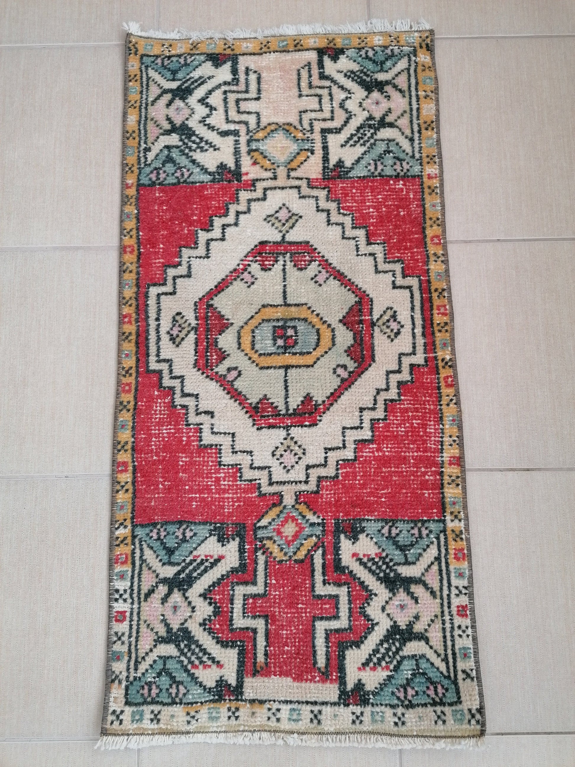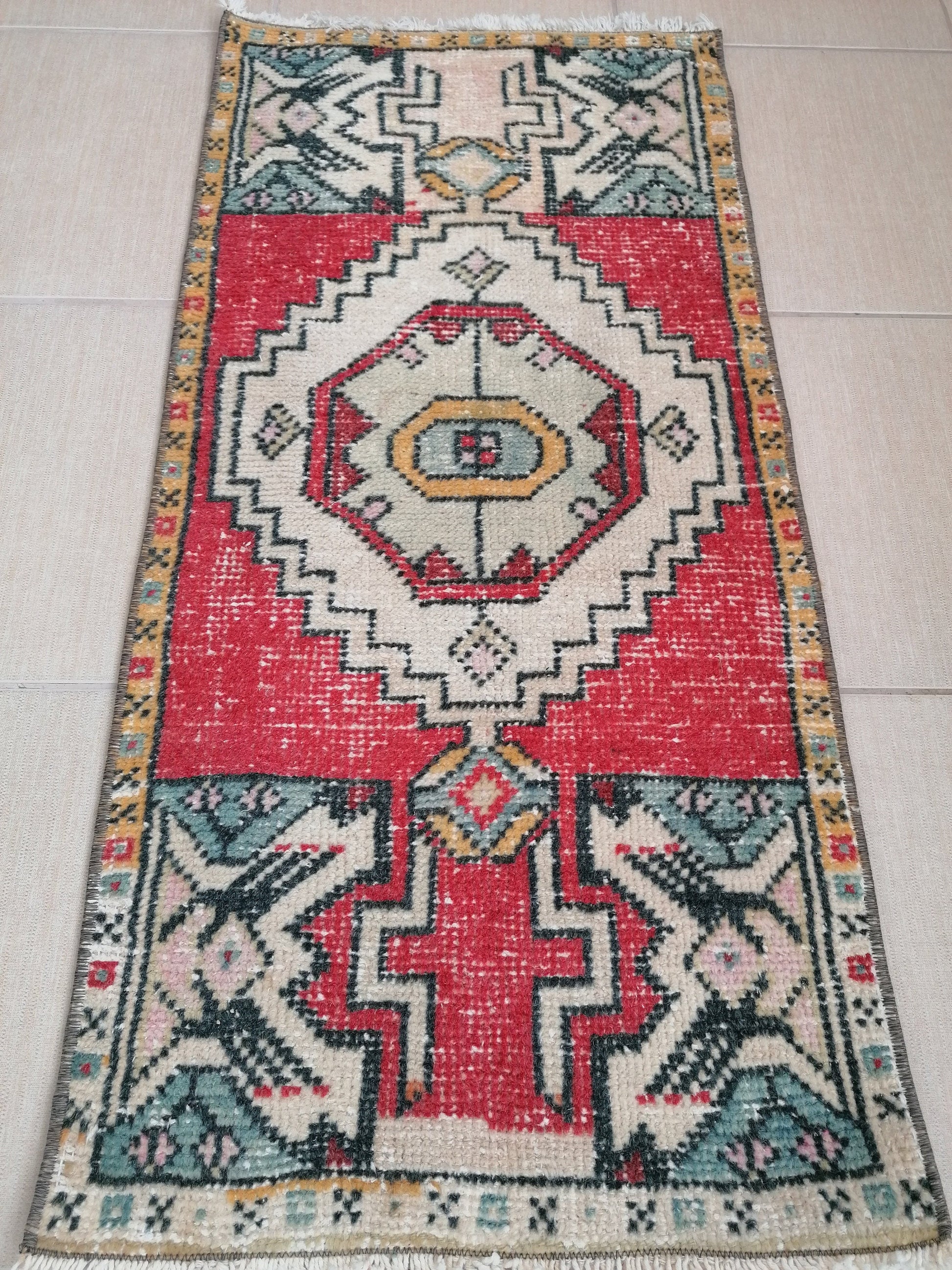 Vintage turkish rug, blue oushak vintage rug,vintage rug,kitchen rug, vintage anatolian rug 3'3x1'7 feet