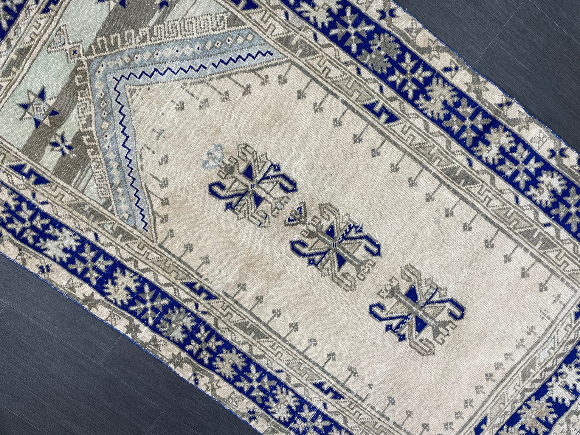 *A vintage handmade Turkish rug made of hand spun wool and double knotted on sturdy cotton foundation,