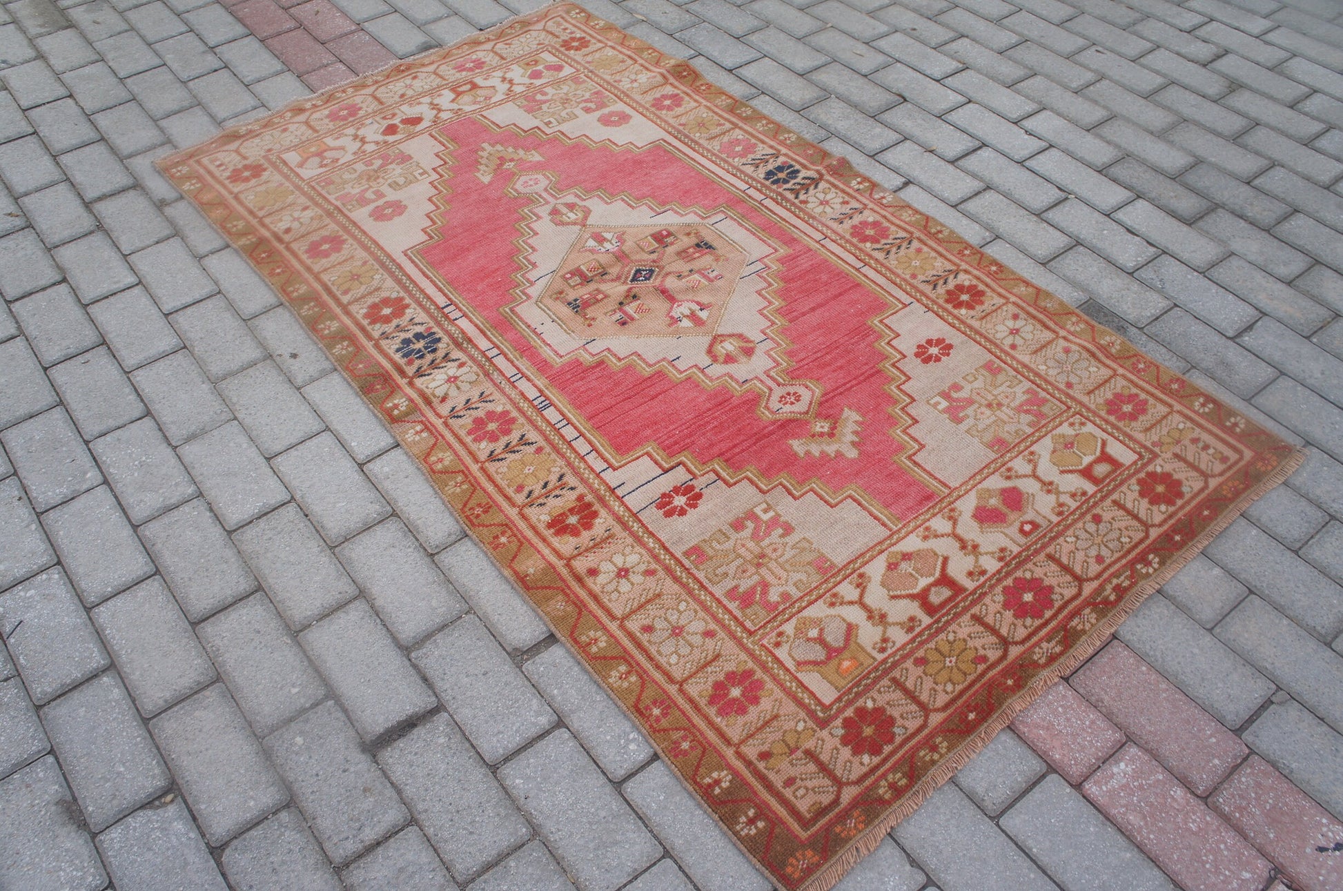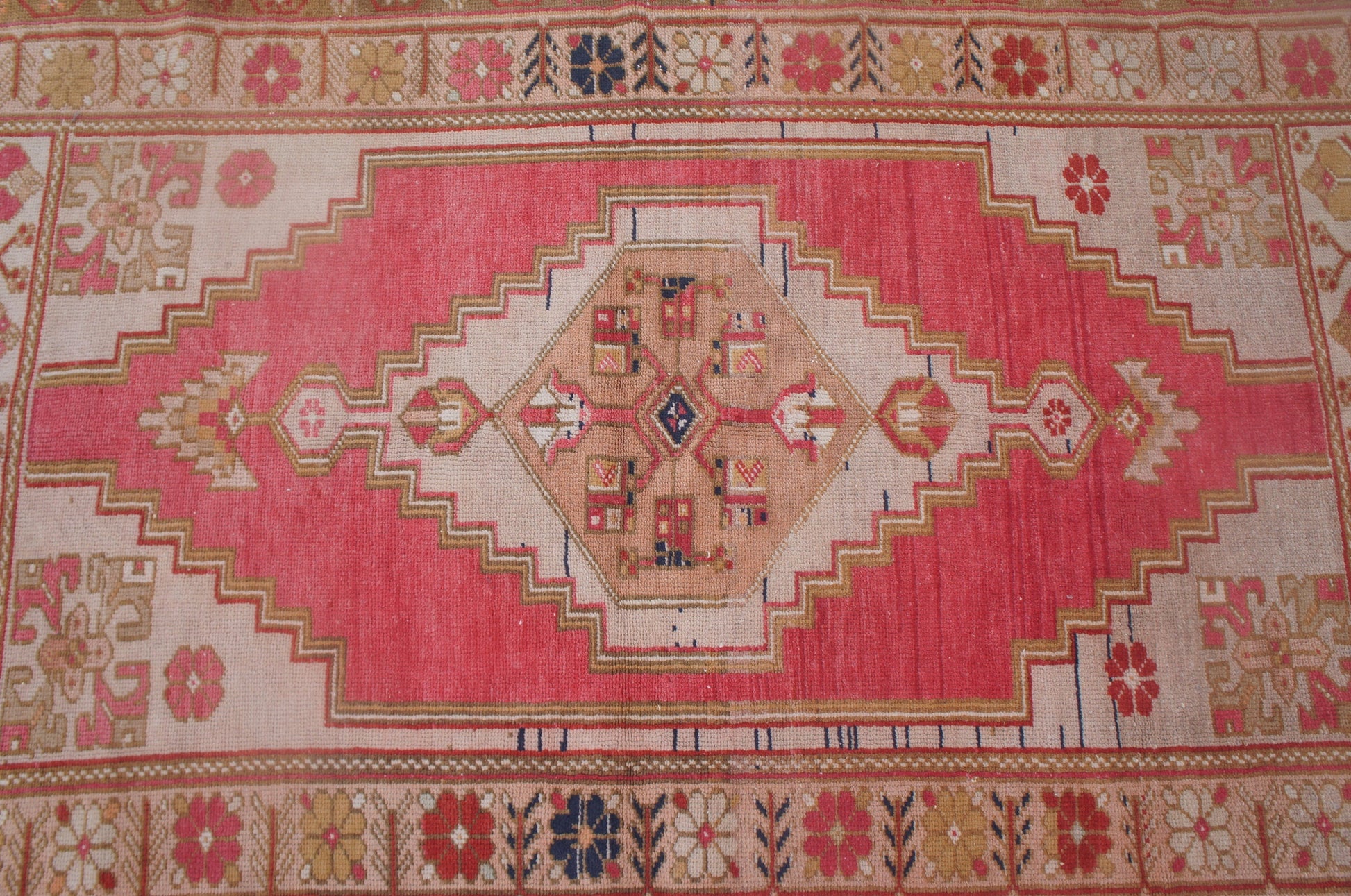 *A vintage handmade Turkish rug made of hand spun wool and double knotted on sturdy cotton foundation,