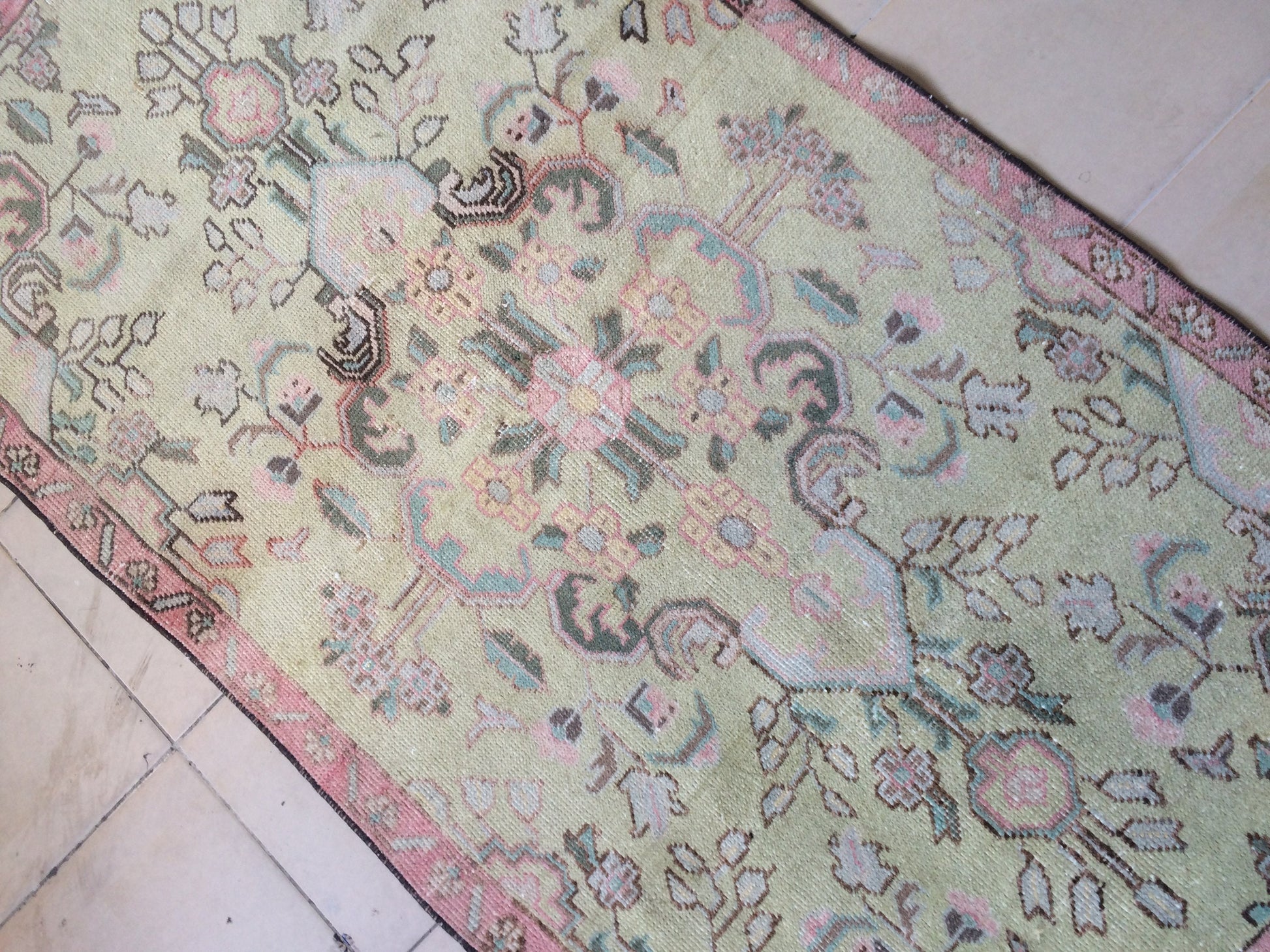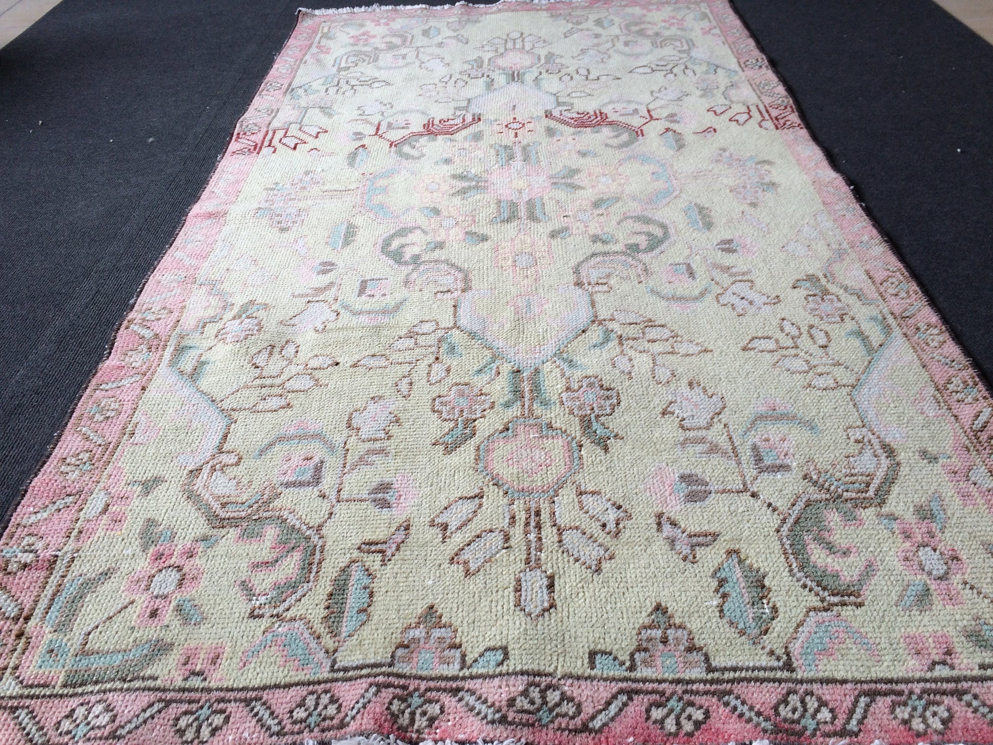 Vintage Turkish Rugs, Bathroom Rug, Living Room Rug, Vanity Rug, Vintage Oushak Rug, Handmade Rug, Natural Wool Rug, Hand Knotted Rug