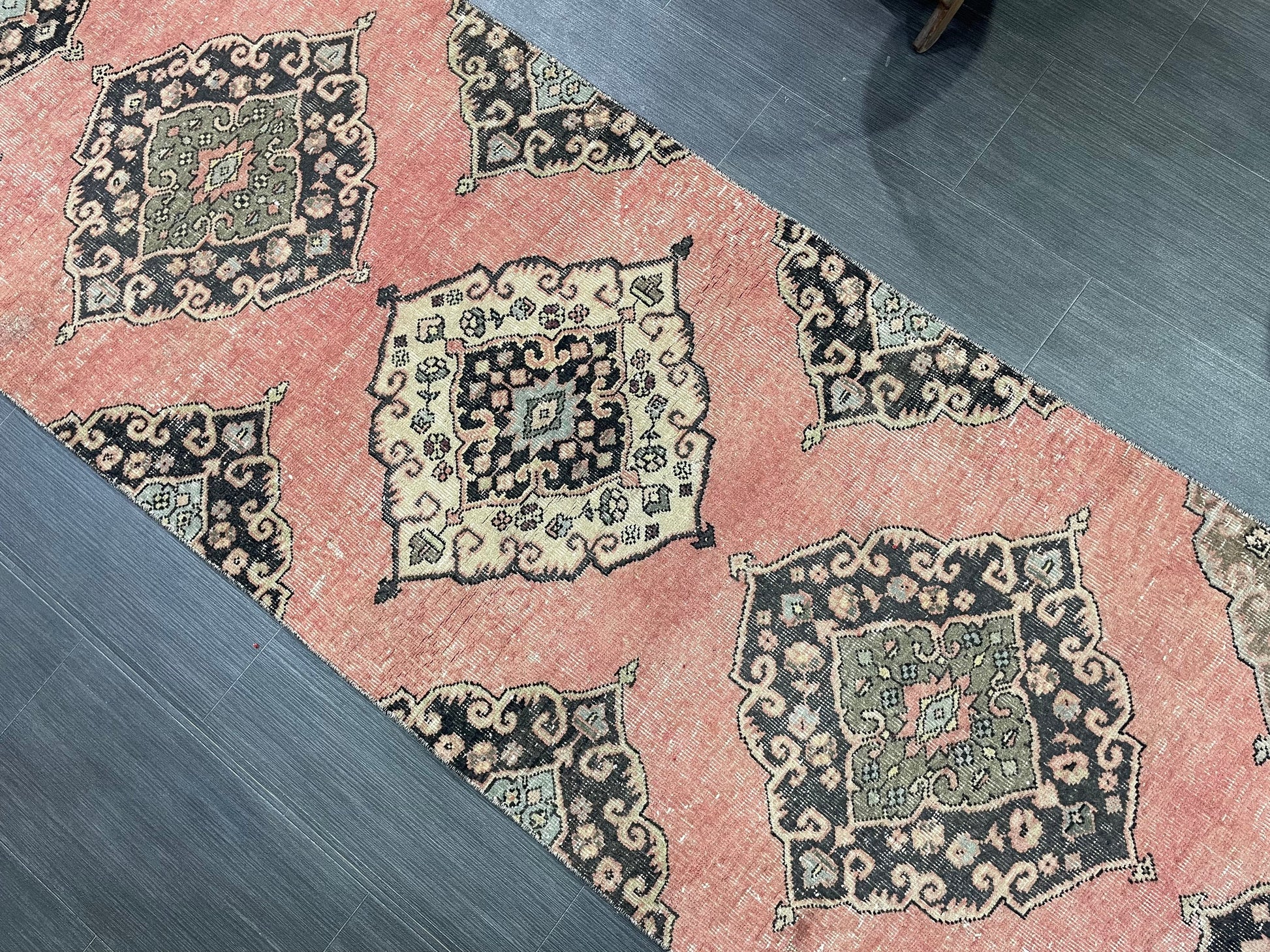 Vintage Turkish Runner Rug, Oushak Runner Rug, Handmade 2.9 x 11.6 Runner Rug, Hand Knotted Runner Rug, Hallway Runner, Kitchen Runner