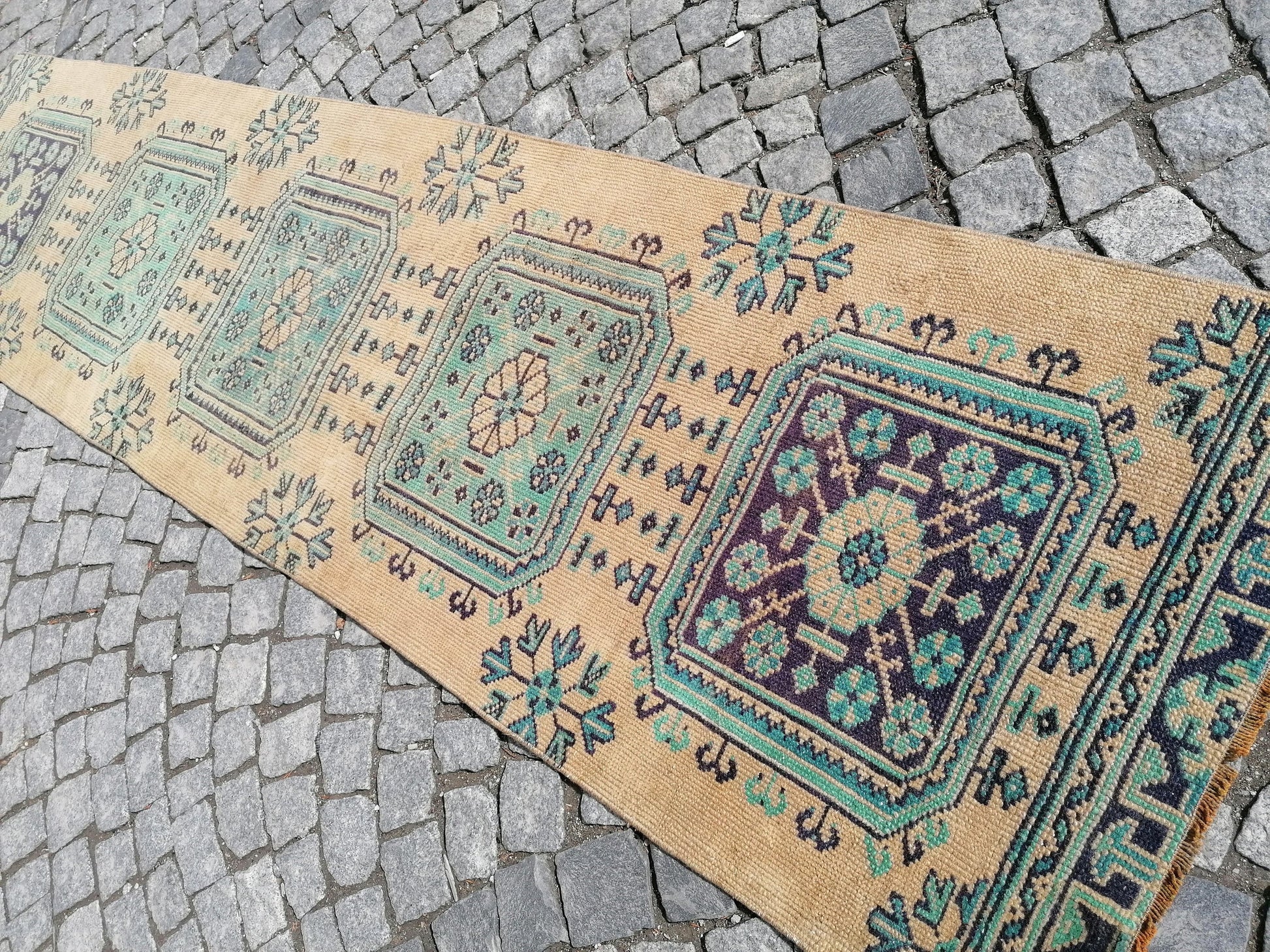 Vintage wool runner 2'7x10'6 oushak vintage runner kitchen runner rug, vintage anatolian runner rug,unique hand made bohemian