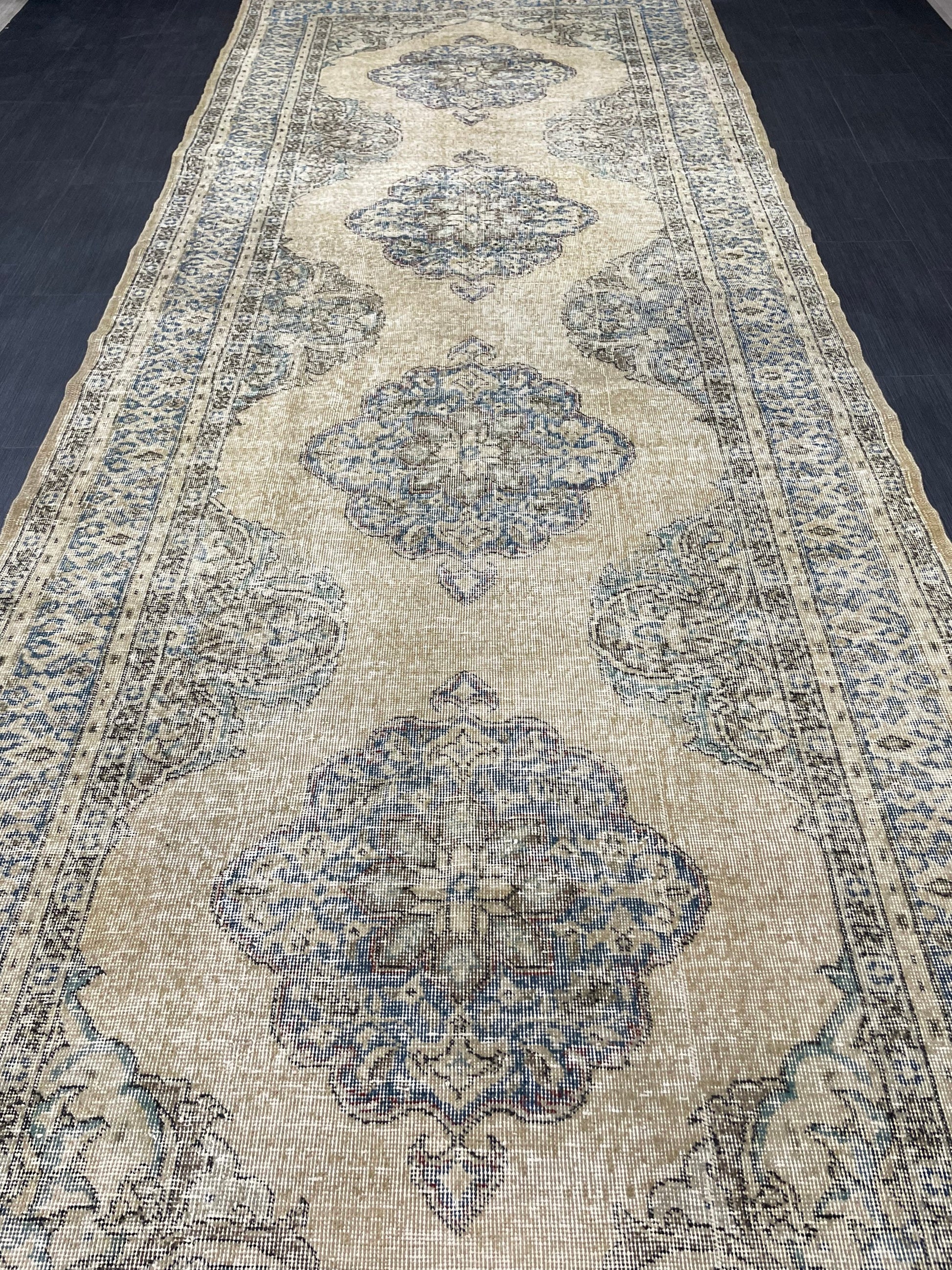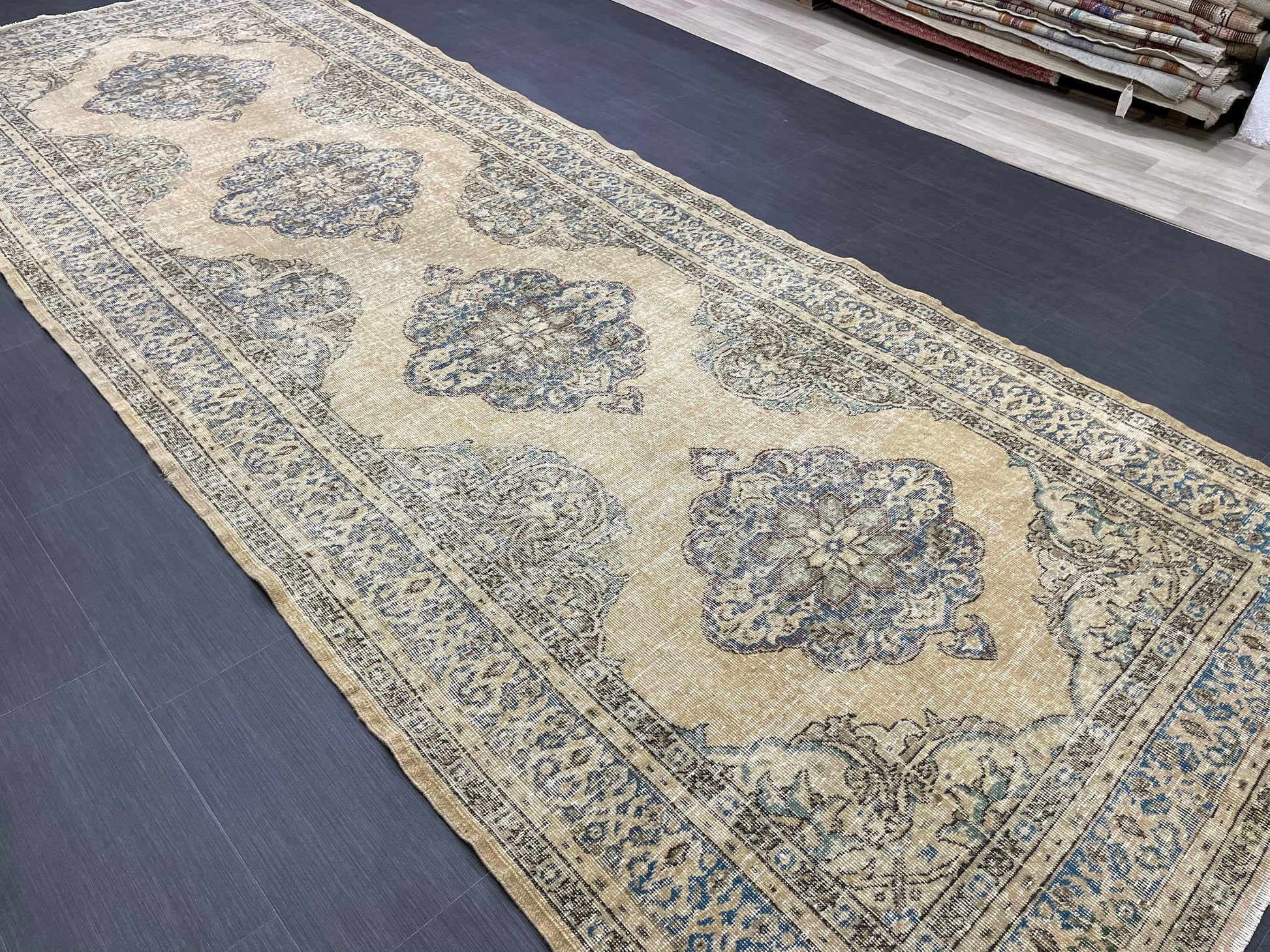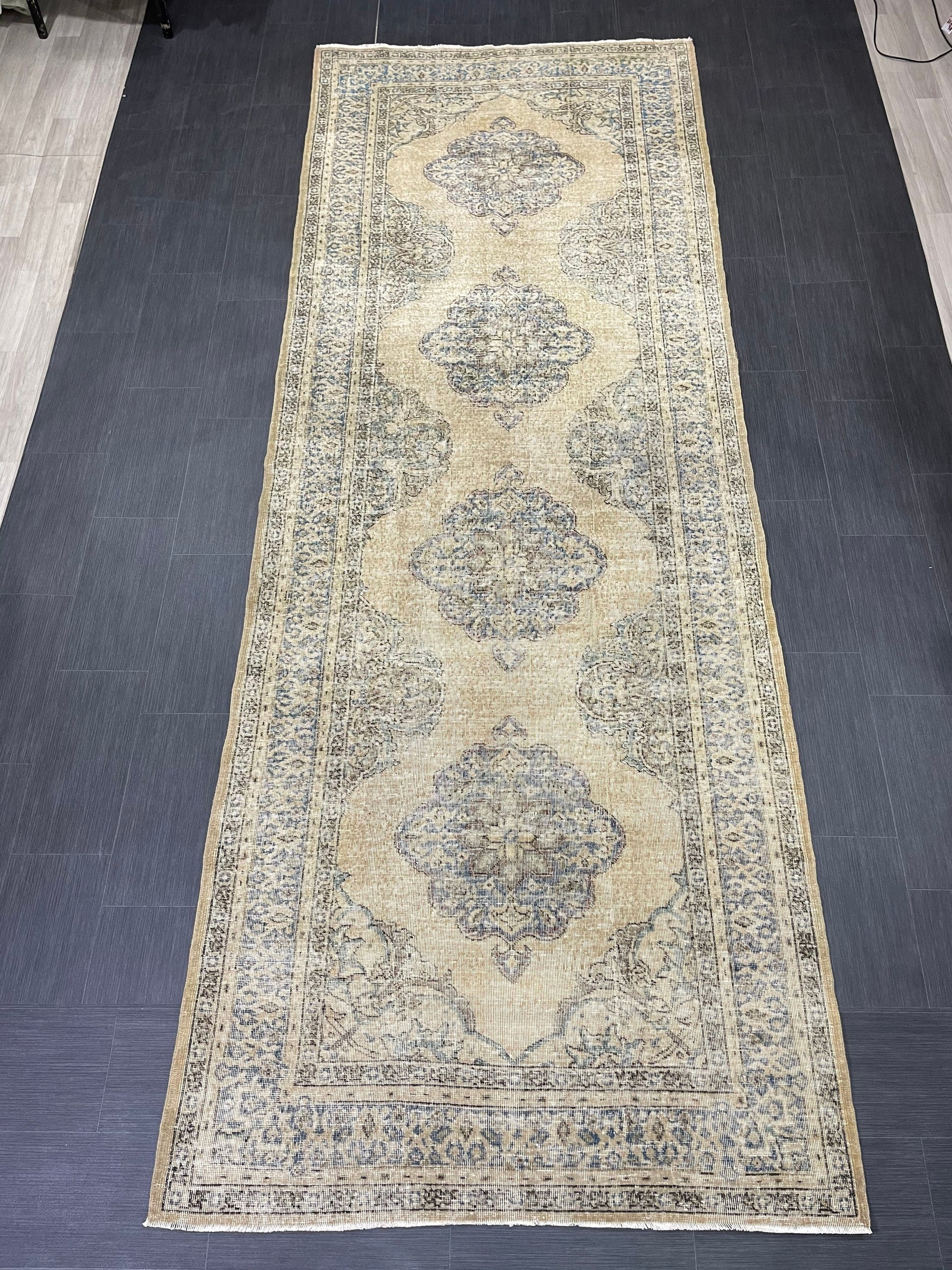 Wool Hand Knotted Rug Vintage 4.8 x 13 Runner Oushak Runner Rug Turkish Runner Rug Vintage Runner Rug Star Kitchen Runner Natural Wool