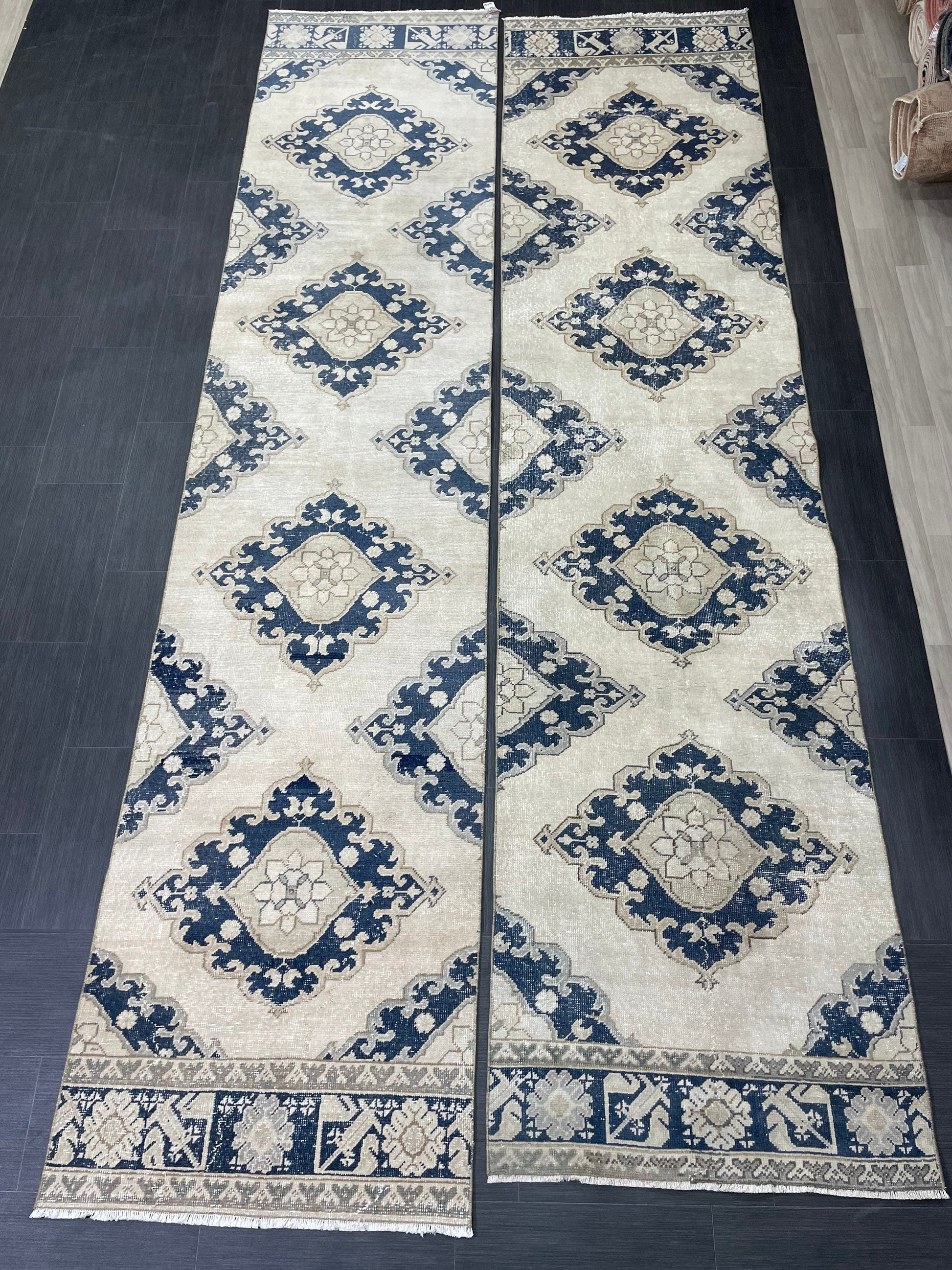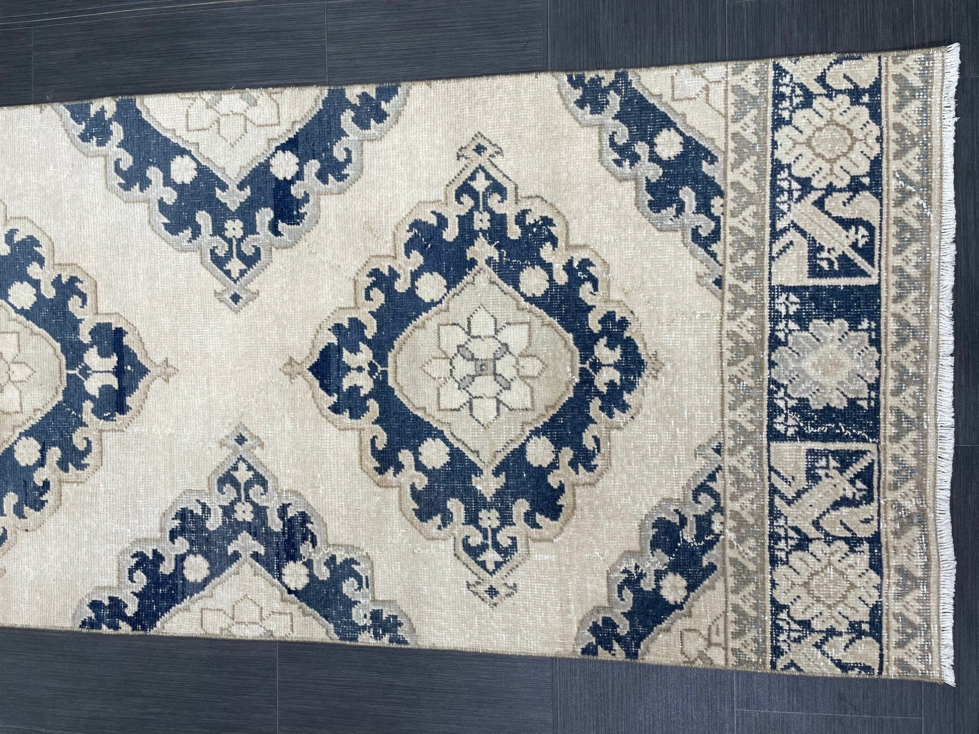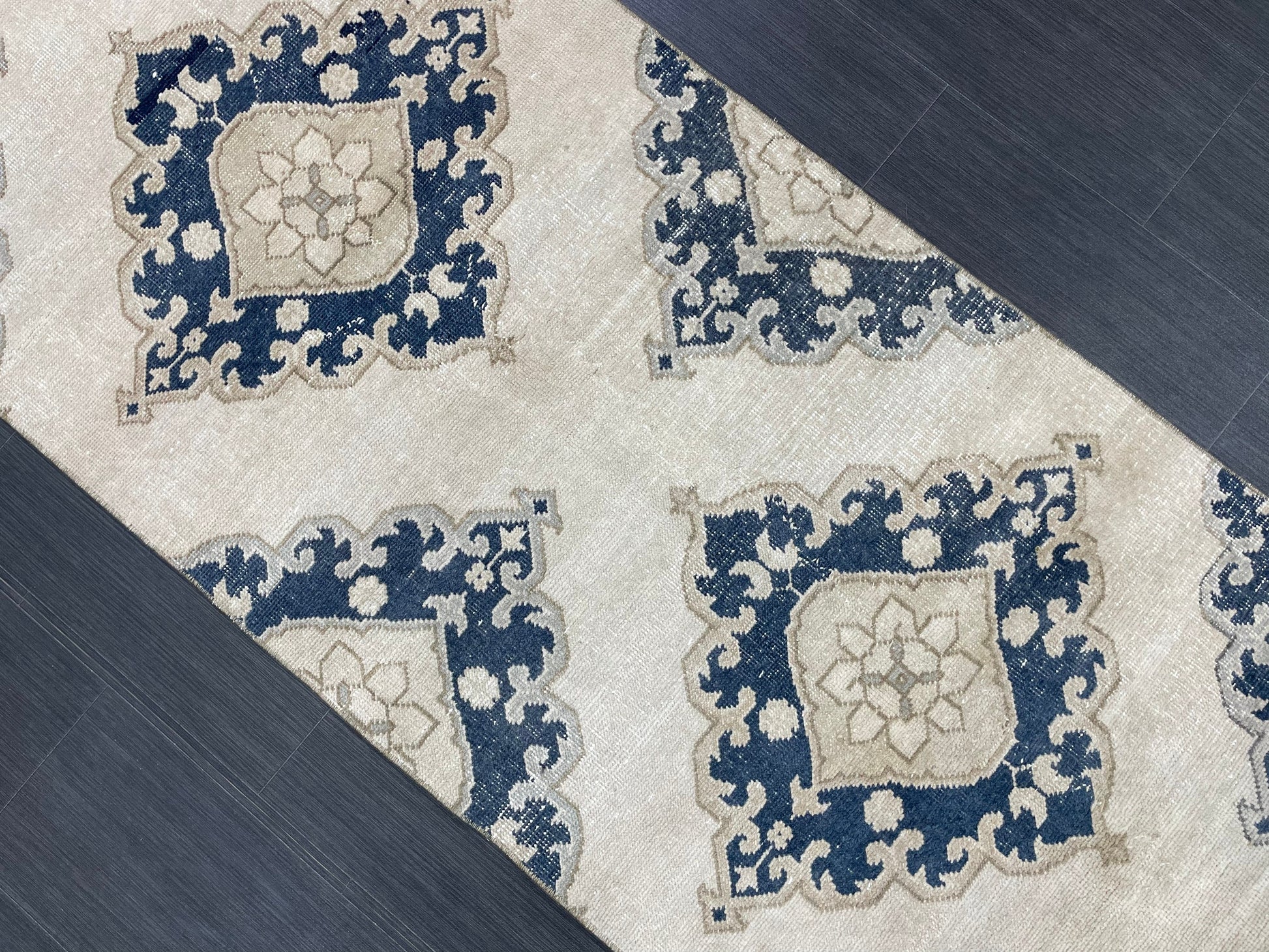 WOOL Hand Knotted Runner Rug Turkish Runner Rug 2.8 x 12.7 Muted Vintage Hallway Runner Rug Kitchen Runner Rug Persian Runner Rug Navy