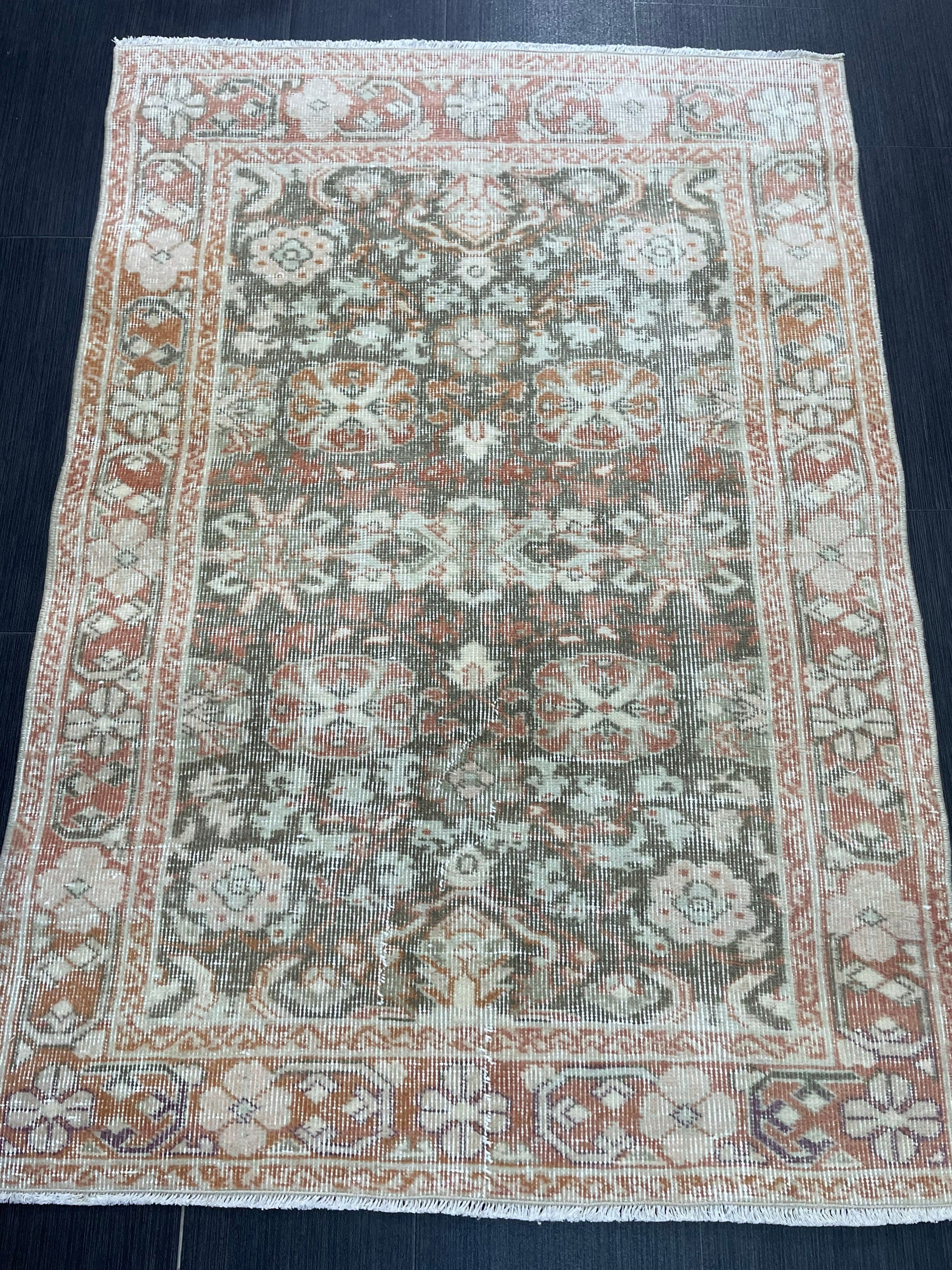Wool Handmade 3 x 4.5 Rug, Persian Rug, Turkish Rug, Hand Knotted Wool Rug, Vintage Rug, Oushak Rug