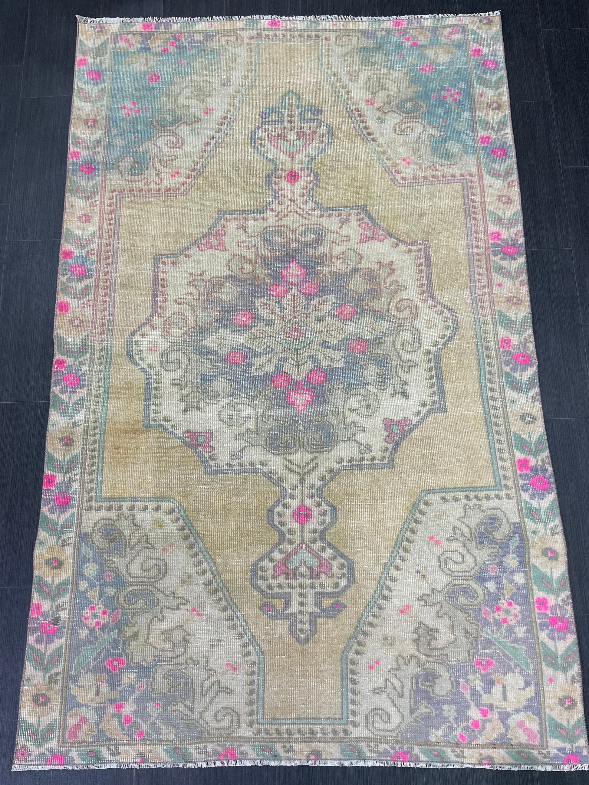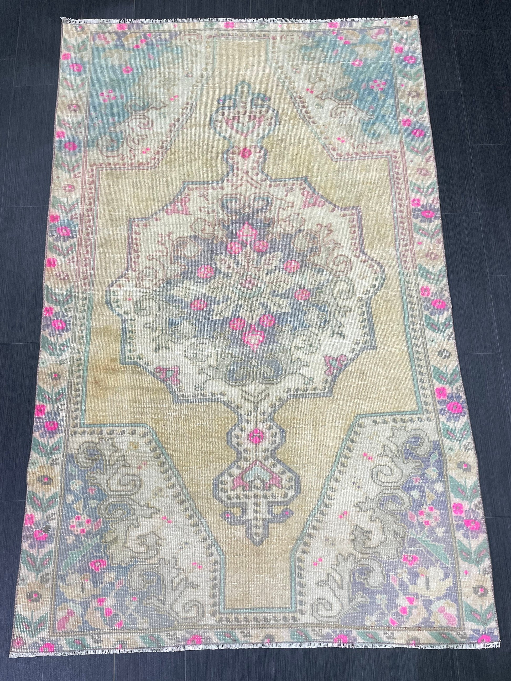 Wool Oushak Rug Vintage 4.5 x 7 Rug Muted Vintage Runner Rug Wool Oriental Rug Hand Made Rugs Vintage Turkish Rug Muted Persian Wool Rug