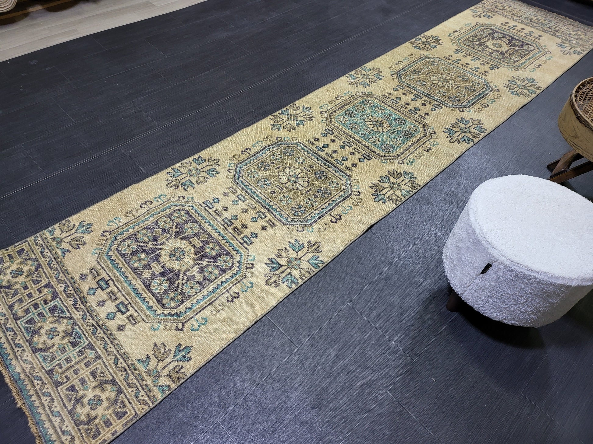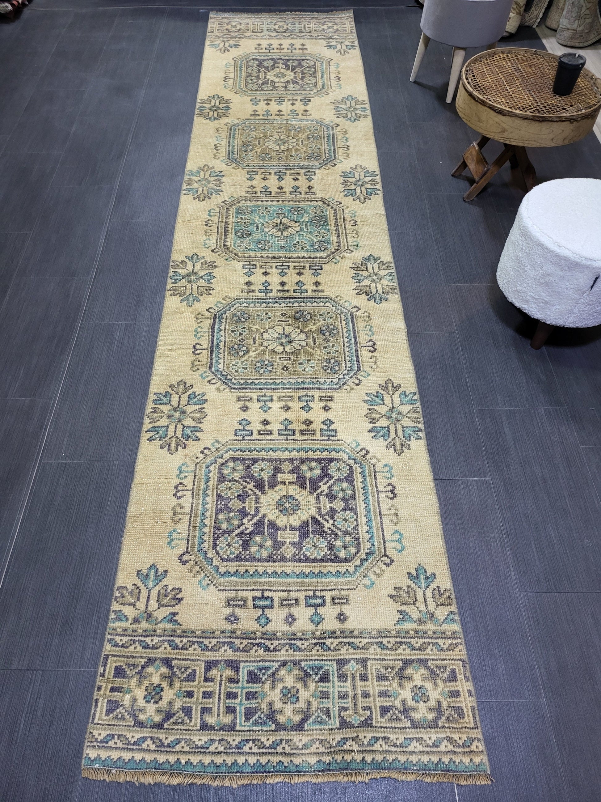 WOOL Oushak Runner Rug, Turkish Runner 2.6 x 11.2 Rug, Vintage Runner Rug ,Hallway Runner Rug, Kitchen Runner Rug Persian Runner Rug