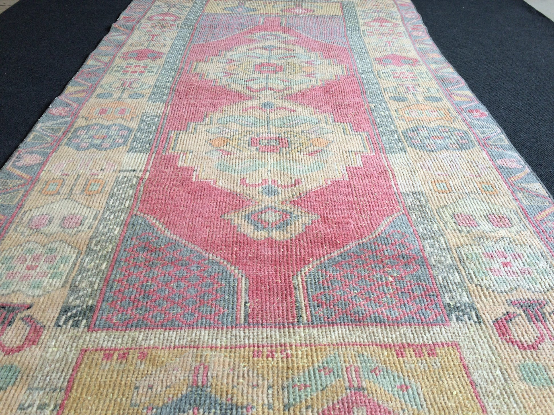 *A vintage handmade Turkish rug made of hand spun wool and double knotted on sturdy cotton foundation,