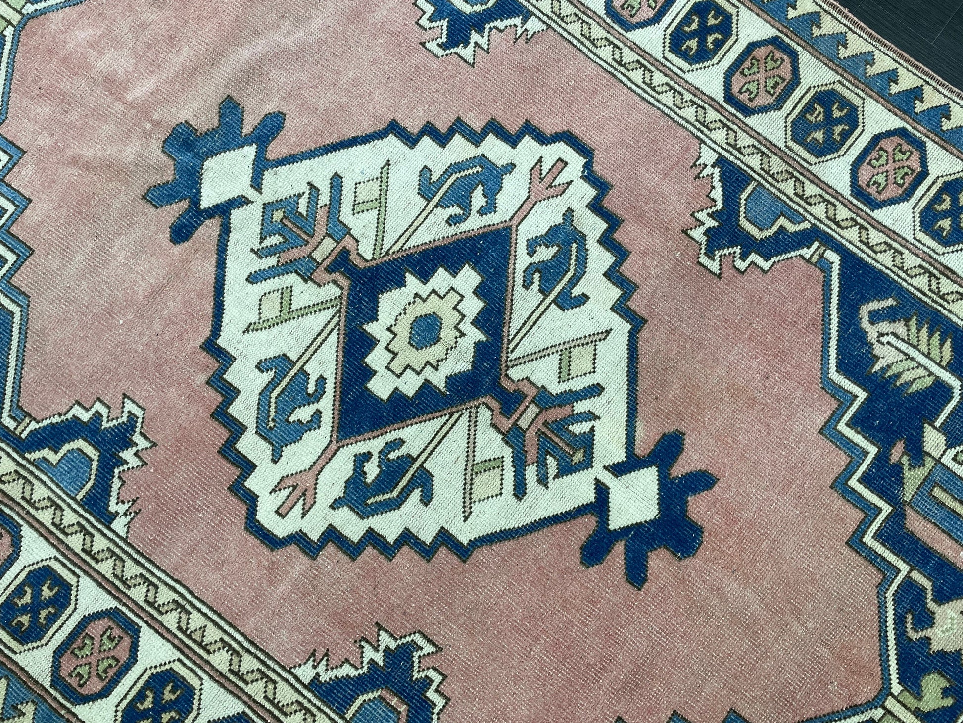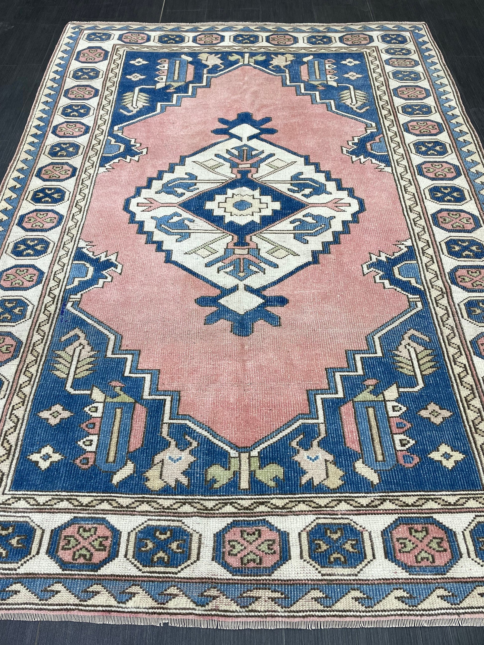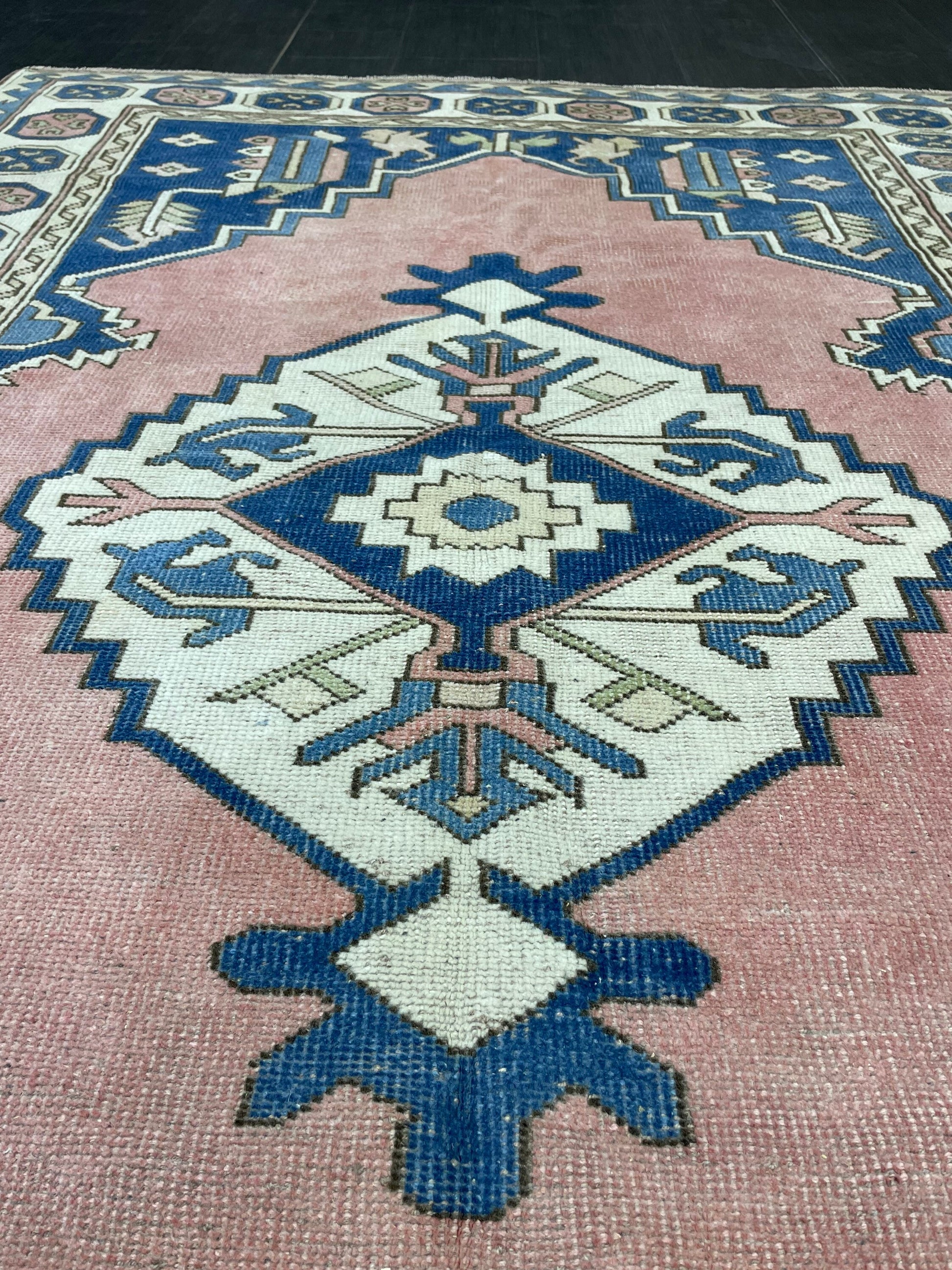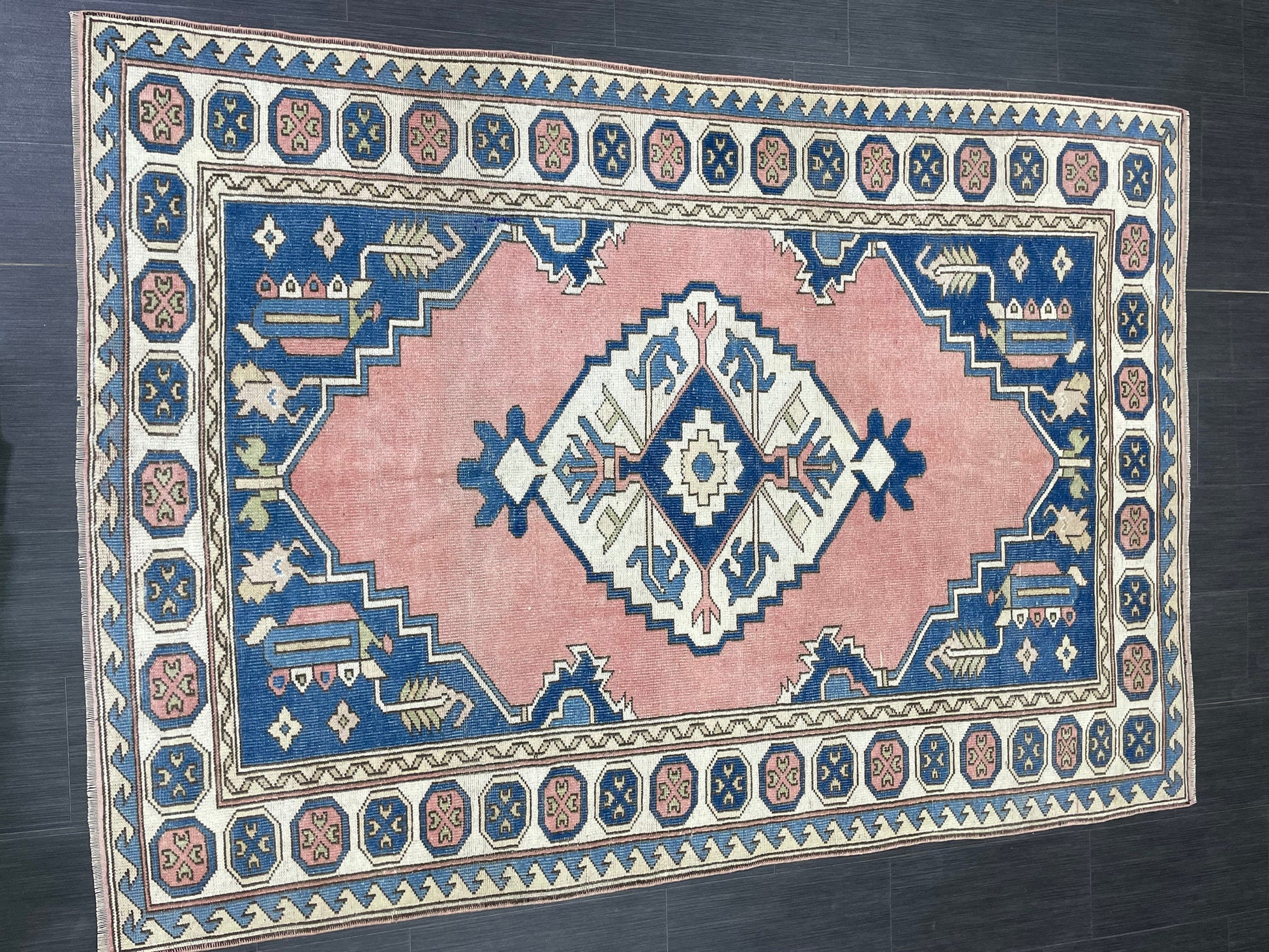 Wool Vintage Rug Handmade 5.3 x 7.5 Rug, Oushak Rug, Turkish Rug, Farmhouse Rug Vintage Rug, Wool rug Oriental Rug Blue and Pink Rug