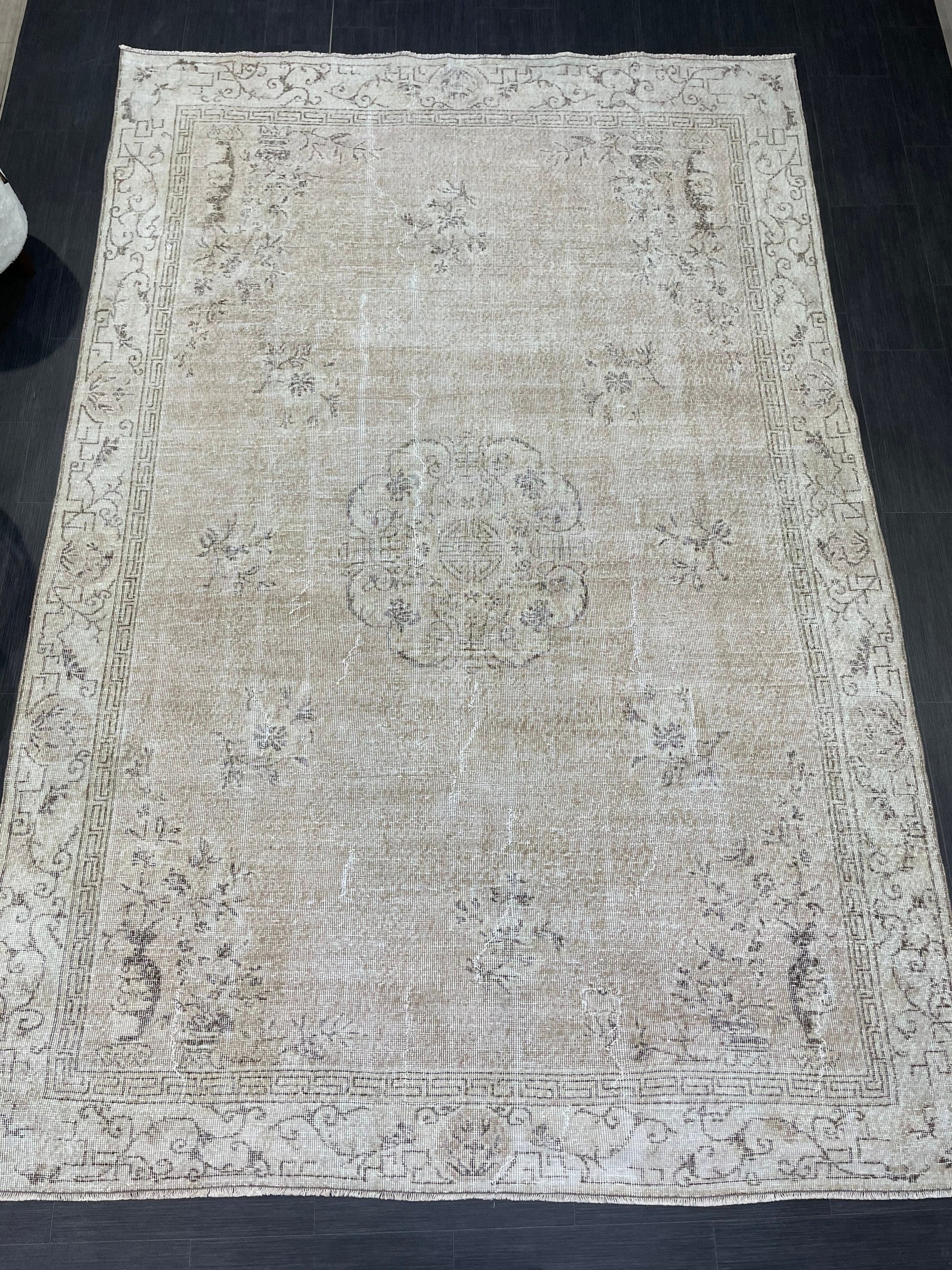 Wool Vintage Rug, Turkish 6.9 x 10 Rug, Muted Handknotted Rug, Handmade Rug, Persian Rug, Living Room Rug, Turkish Kitchen Rug